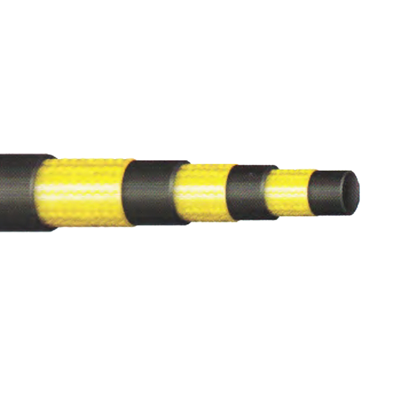 膠管由耐油的內膠層、三層鋼絲編織增強層、耐天候的外膠層組成。
