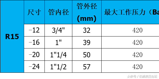 附:常用液壓膠管內(nèi)外徑及最高工作壓力參數(shù)