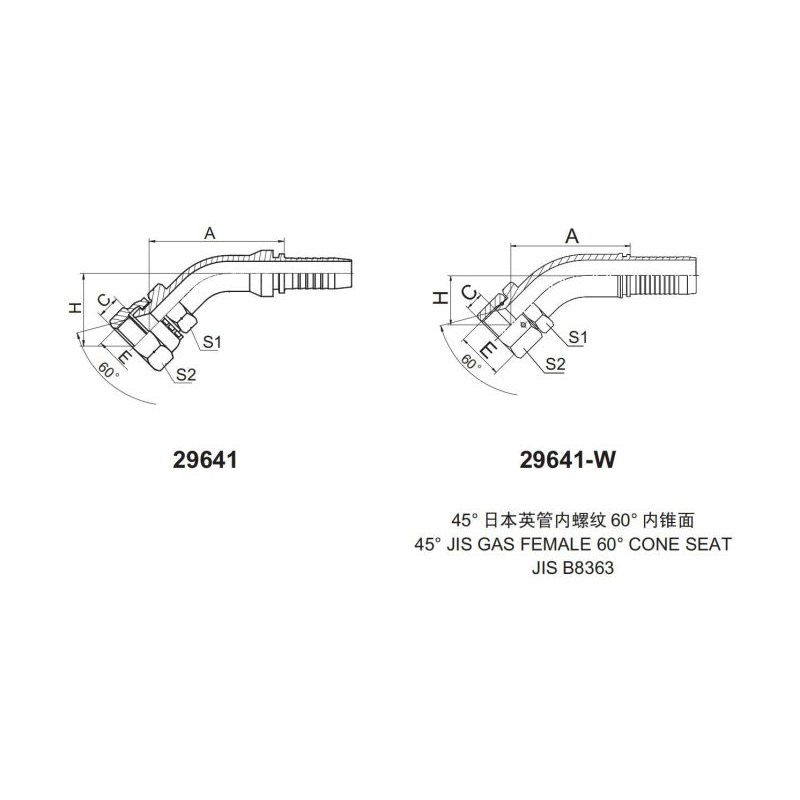 扣壓式接頭 29641--29641-W 45度日本英管內螺紋 60°內錐面 45° JIS GAS FEMALE 60° CONE SEAT JIS B8363