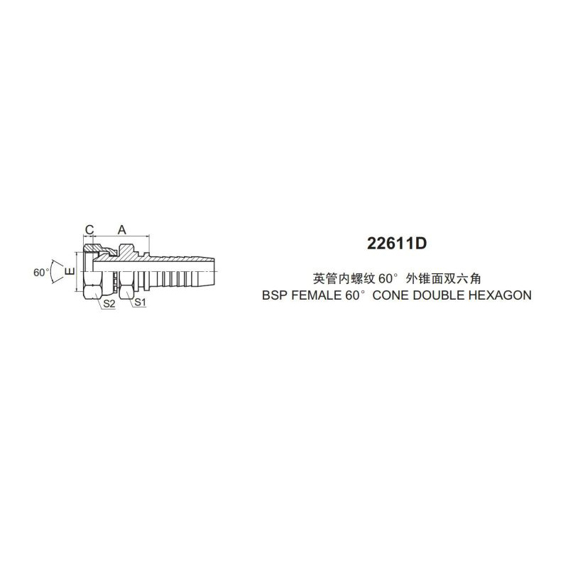 BSP FEMALE 60° CONE DOUBLE HEXAGON