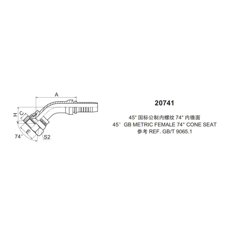永華標準扣壓式接頭 2074145國際公制內(nèi)螺紋 74內(nèi)錐面45 GB METRIC FEMALE 74 CONE SETA參考標準:REF.GB/T 9065