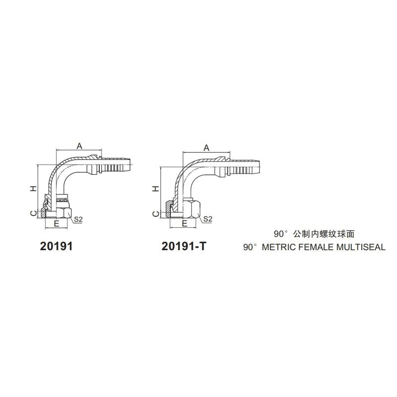 永華標準扣壓式接頭 20191和20191-T 90公制內螺紋 球面密封面90 METRIC FEMALE MULTISEAL該接頭常用材質有碳鋼彩、碳鋼鍍白鋅