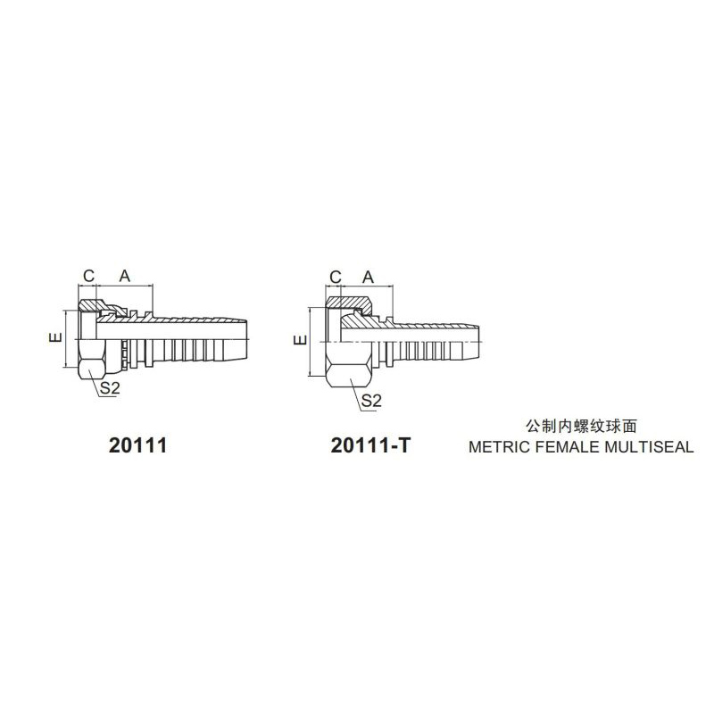 扣壓式接頭 20111和20111-T 公制內螺紋 球面密封面
