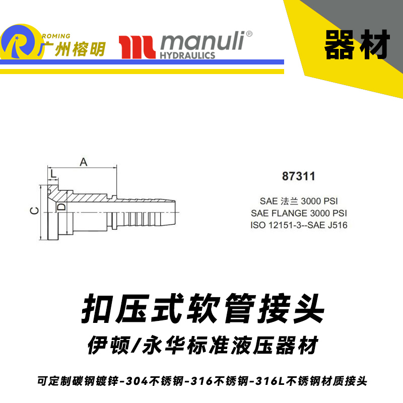 永華接頭 87611 瑪努利交給常用扣壓式接頭 軟管總成接頭 SAE 法蘭 6000PSI 管接頭
